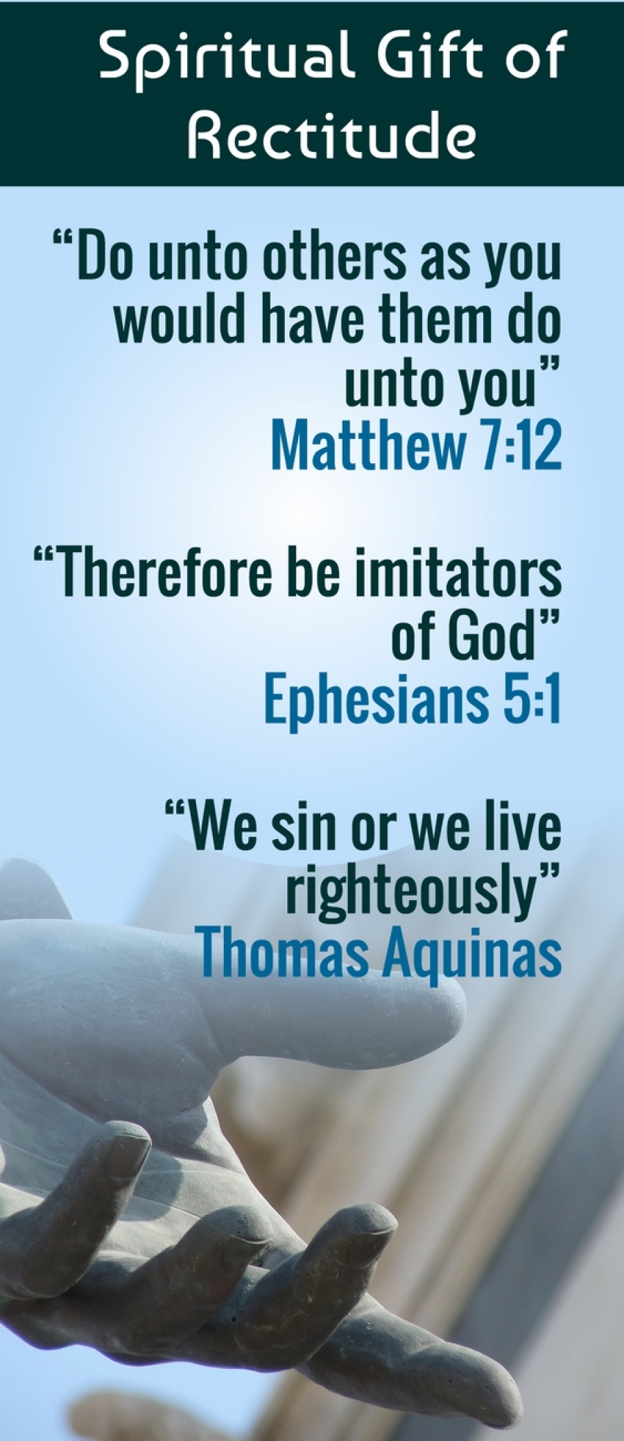 The Golden Rule, "Do unto others as you would have them do unto you", Matthew 7:12, is also known as the spiritual gift of rectitude or imitate God. It is the definition of the good and the ethical behavior, the Golden Rule is empathy, is to put ourselves in the place of the other. The best-known case of Righteousness is the parable of the Good Samaritan in the Gospel of Luke (Luke 10). But this parable goes beyond, explains the ethical behavior of people: we sin, that is to say we practice evil or we live righteously, that is to say we live the good. People are edifying or destructive, good or bad. There is no middle ground, white or black there is no gray. The golden rule is the path to spiritual illumination, the sin instead is a form of error.